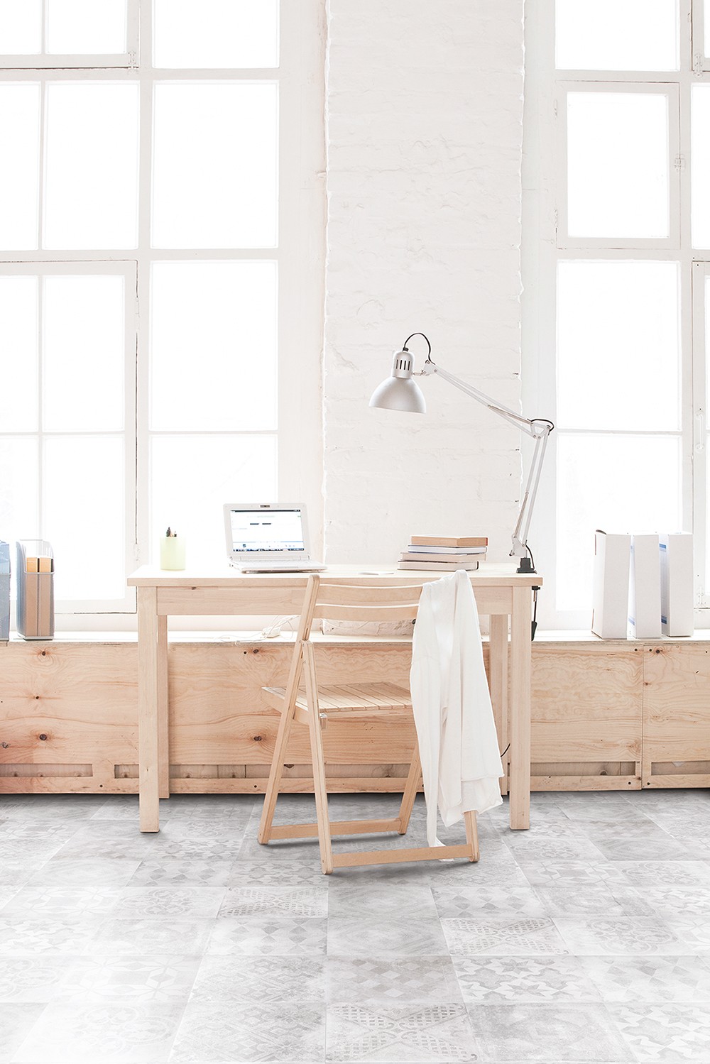4 gråtoner i en rekke forskjellige flistyper kan kombineres på tvers av overflater, størrelser, og dekorer.