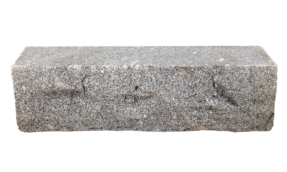Våre granittmurer har to sider saget, og to sider med naturlig bruddflate.
