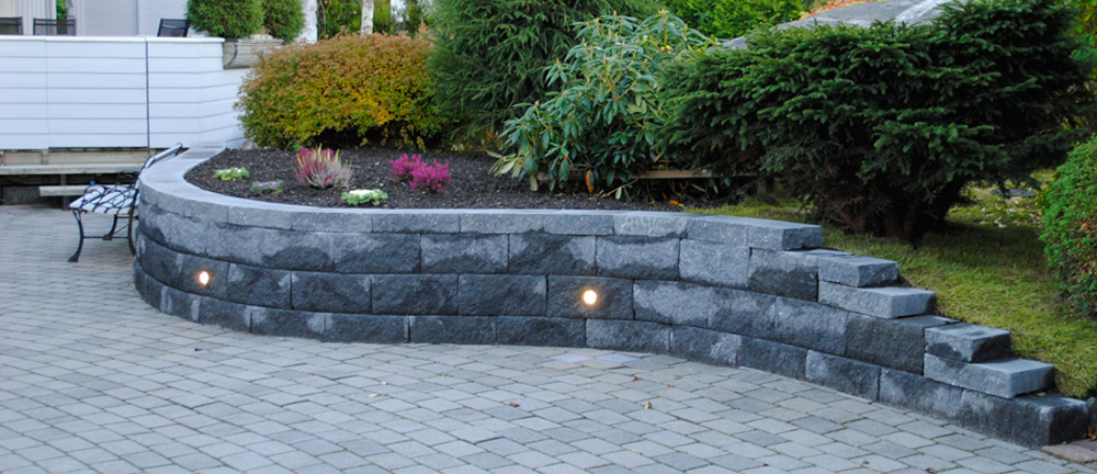 Vertica® mur er en komplett støttemur som kan stables manuelt eller maskinelt. Monteringen er rask og enkel, muren skal kun tørrstables. Mulighetene er endeløse for å lage små og store murer, med eller uten hjørner og buer.