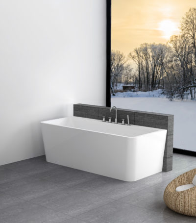 Sense er et romslig og elegant “Back-to-wall” designbadekar som er helstøpt i sanitærakryl, med både front- og to endepaneler. Lekkert og moderne badekar med sitteplass i begge ender. Leveres standard med designoverløp, justerbare ben og avløpsrør. Karkantarmatur kan enkelt monteres på badekarkanten inn mot veggen.