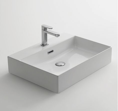 Delta 60 er en stilful porselensservant med rette liner og rektangulær form produsert i Italia. Vasken monteres på benkeplate og leveres med overløp. Porselenet gir deg en like funksjonell og vakker servant, år etter år.